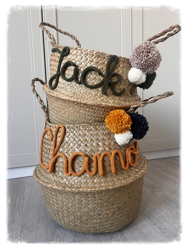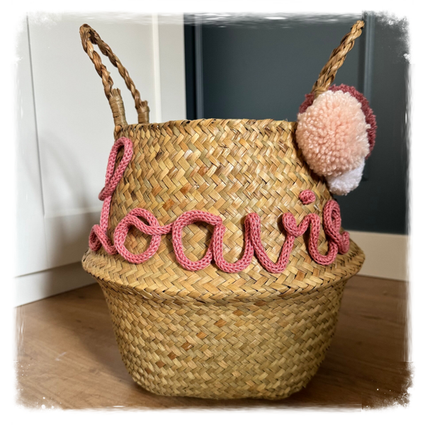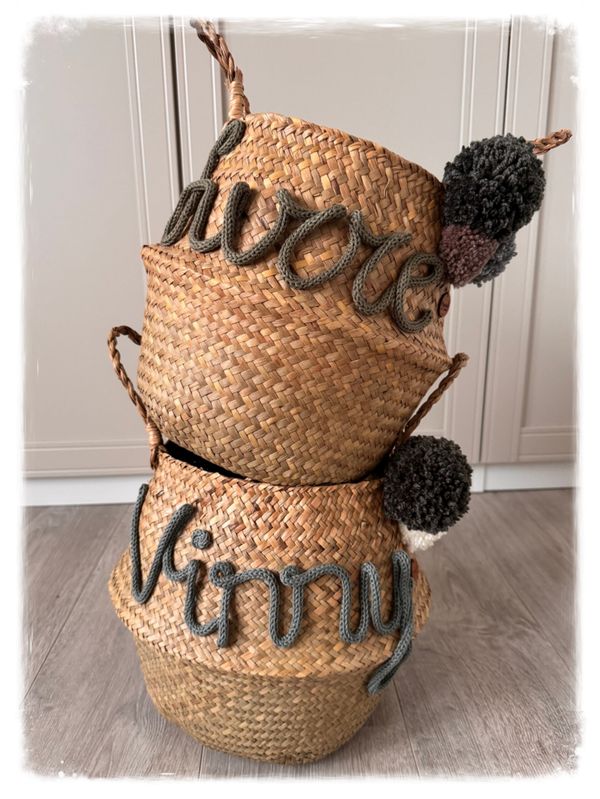 Wil jij een origineel cadeau geven? Laat een mand met naam naar wens maken. Je zou hem nog kunnen vullen met andere cadeautjes.